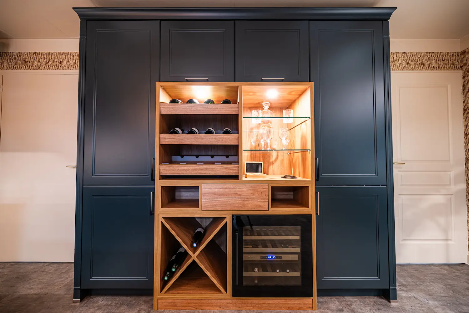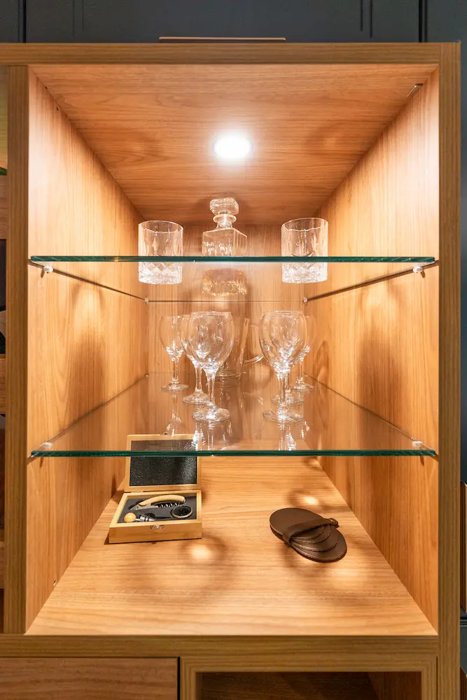 La cave à vin Le Chai maintient à bonne température vos bouteilles préférées, tandis que la vitrine rétroéclairée sublime vos moments de détente.