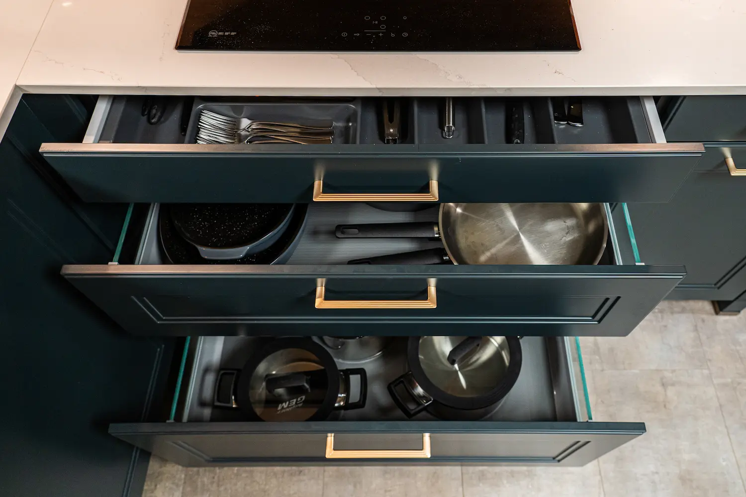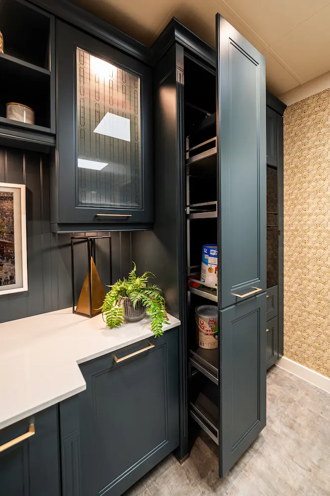 La cuisine Rollon a été conçue sur-mesure pour associer élégance et fonctionnalité. Ses façades bleu nuit à cadre droit apportent un style raffiné et intemporel, tandis que son plan de travail clair met en valeur l’îlot central, pensé pour être un véritable espace de convivialité. L’héritage de Rollon, revisité en cuisine.